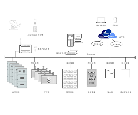 监测配电系统中开关柜、微机保护、电源系统、变压器、发电机等设备的事故信号、异常信号和变位信号,当信号状态发生变化时,系统发出本地声、光告警和远程短信、电话告警,完全涵盖传统信号屏,信号箱的功能,为配电设备安全运行提供保障。