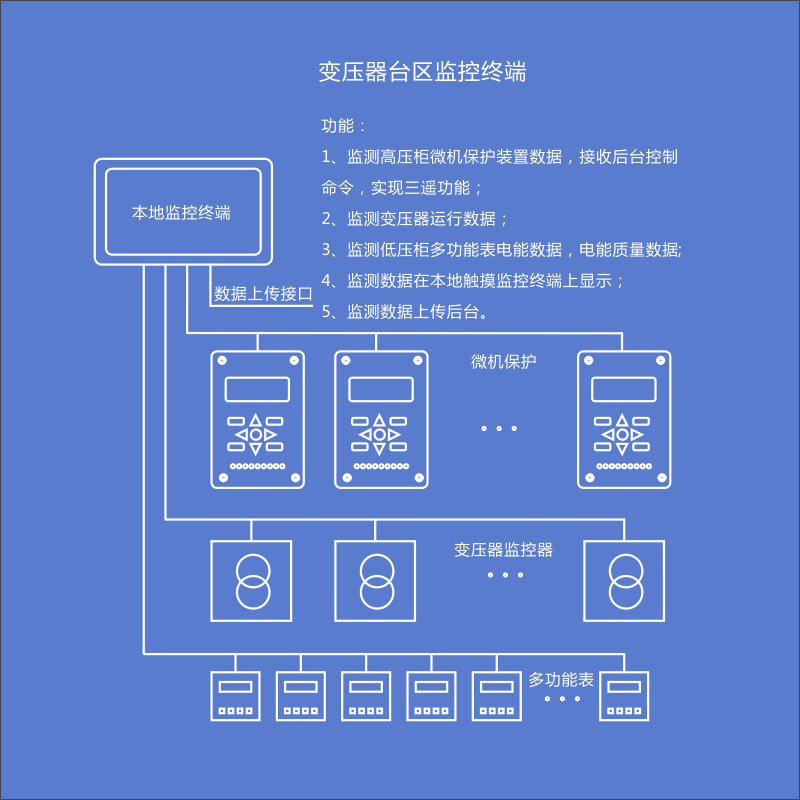 用途:全方位监测配电系统的运行参数,为配电场所无人值守和智能化管理提供手段。