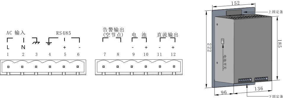 智能化监测与控制: 电源由微处理控制,对关键点温度、电流、电压、负载等进行实时监测,对降温风扇进行智能控制,通过RS485通信口输出监测参数和告警信号。